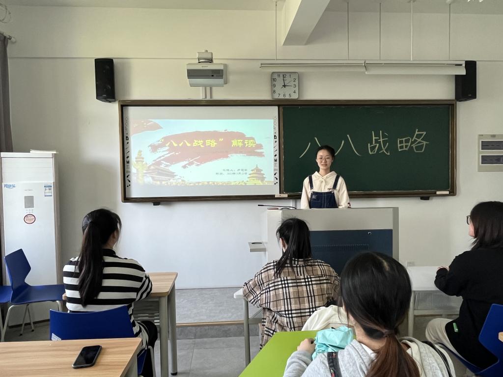 5月23日,商务英语系员工党支部开展了“解读 ‘八八战略’深刻内涵 探讨‘八八战略’践行之道”的主题党日活动。员工党员从“八八战略”的内容入手,认真解读“八八战略”的内涵,探讨了在日常学习生活中该如何践行“八八战略”,并号召全体党员时刻牢记习近平总书记的殷殷嘱托,把忠实践行“八八战略”与学思践悟习近平新时代中国特色社会主义思想贯通起来,用实际行动积极投身于建设社会主义现代化强国的伟大事业,努力成为全面发展的新时代接班人。