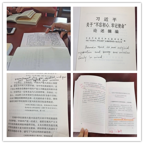 本次专题学习会让全体教工党员静下来、坐下来,原原本本诵读原著、学原文、悟原理,教工党员们还自觉在书上用中英文批注心得体会,将理论知识入心入脑。