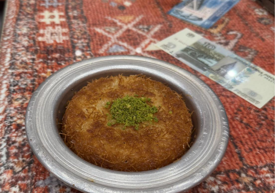 临别之际,巴勒什将新鲜出炉、散发着诱人香气的“库纳法”分赠给实践团成员。酥脆的口感包裹着恰到好处的甜意,这份精心调制的甜蜜,不仅是对味蕾的犒赏,更是对文化理解与包容精神最直观的诠释。