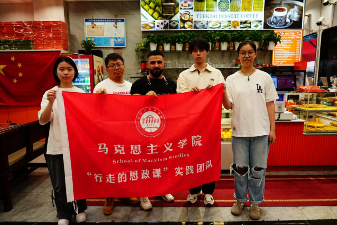推开Sweet Life的店门,中国国旗与店内橙色相映。店内的土耳其面点师巴勒什热情招呼:“尝尝改良版巴克拉瓦!”中国经理王泽辉详细介绍了小店因店主阿布杜拉因爱中国功夫携手艺扎根义乌的过程,讲述中满含对中华文化的深情。员工领队向店经理说明来意,希望以甜品为切口探索“土耳其·小商品城”的文明共振,经理激动道:“甜蜜需要分享,希望通过你们的视频,能让更多人喜欢上它们。”