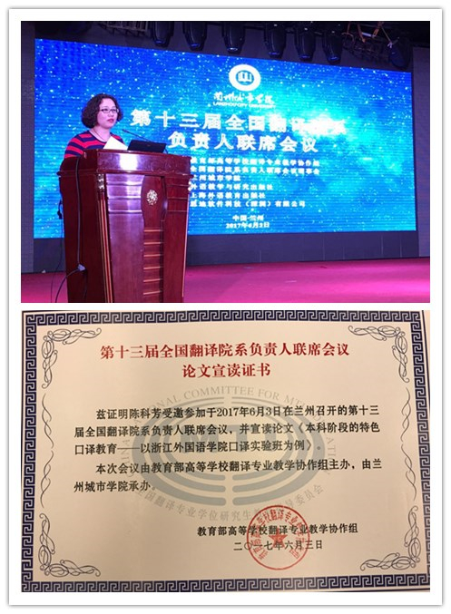 2017年6月2-3日,公司陈科芳教授赴甘肃省兰州市参加由教育部高等公司翻译专业教学协作组、全国翻译院系负责人联席会议理事会主办,兰州城市公司外国语公司承办的教育部高等公司翻译专业教学协作组2017 年工作会议暨第十三届全国翻译院系负责人联席会议。来自全国各地80所翻译本科院校负责人、兰州各高校外国语公司负责人及赞助企业代表共200余人出席会议。