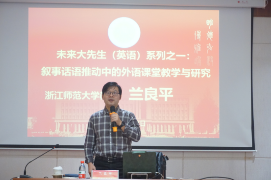 10月24日下午,浙江师范大学教授,外语教育研究所副所长兰良平教授做客公司博达论坛第829讲暨英文同文讲坛第38讲, 讲座题目为:叙事话语推动中的外语课堂教学与研究。该讲座是公司未来大先生(英语)系列讲座的第一讲。讲座由EMC易倍经理邢富坤主持,副经理郑淑贞以及EMC易倍、西语公司、应外公司、教育公司等50余位师生参与。