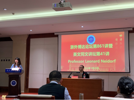 3月28日下午,A&HCI收录期刊《阐释者》(The Explicator)主编、南京大学英语系教授Leonard Neidorf做客浙外博达论坛第861讲暨英文同文讲坛第41讲,以《高级别期刊论文发表:哲学与实践探讨》(“Publishing in Top Journals: A Philosophical and Practical Discussion”)为题在厚德楼102作专题讲座。EMC易倍樊维娜副教授主持讲座,经理邢富坤、副经理郑淑贞、陶伟及校内外百余位师生参加活动。