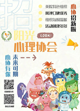 无论你是哪个部门的最佳拍档,阳光心协都热烈欢迎你的加入!请扫描下方二维码,填写报名表,并加入我们的招新群,备注“意向部门+姓名+联系方式”。与《头脑特工队》共赴这段充满爱与成长的心旅,我们不见不散哦~