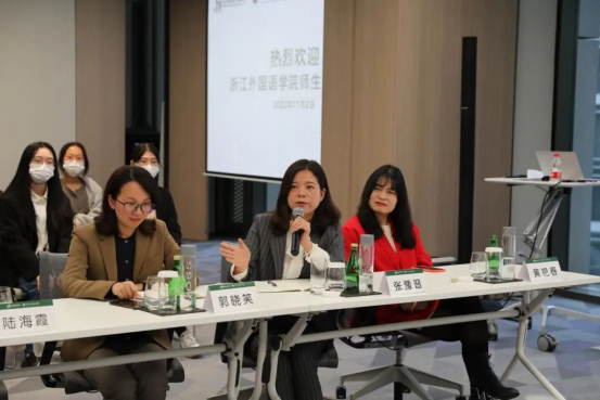 总结环节,张豫晋感谢横店进出口有限公司一直以来在就业基地建设、教育实习开展、共建课程推进和行业导师聘请等方面给予的大力支持。她提醒并鼓励同学们要“自知自信”,既知道自己的能力水平和未来发展方向;又相信公司在人才市场的口碑和自己的专业能力及综合素养。
