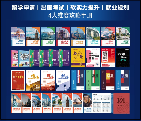 凡参加活动的同学,均可获得如下新通教育集团独家出版留学/升学申请攻略实体书、雅思/托福/小语种备考实体书和电子版内部资料(包含最新预测题)。