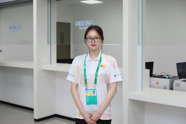 与林安琪有着相同专业背景的浙外员工娄宜晓,是亚运村医疗卫生防疫中心综合门诊部的志愿者,主要负责引导人员就医,以及协助医护人员做好接诊工作。