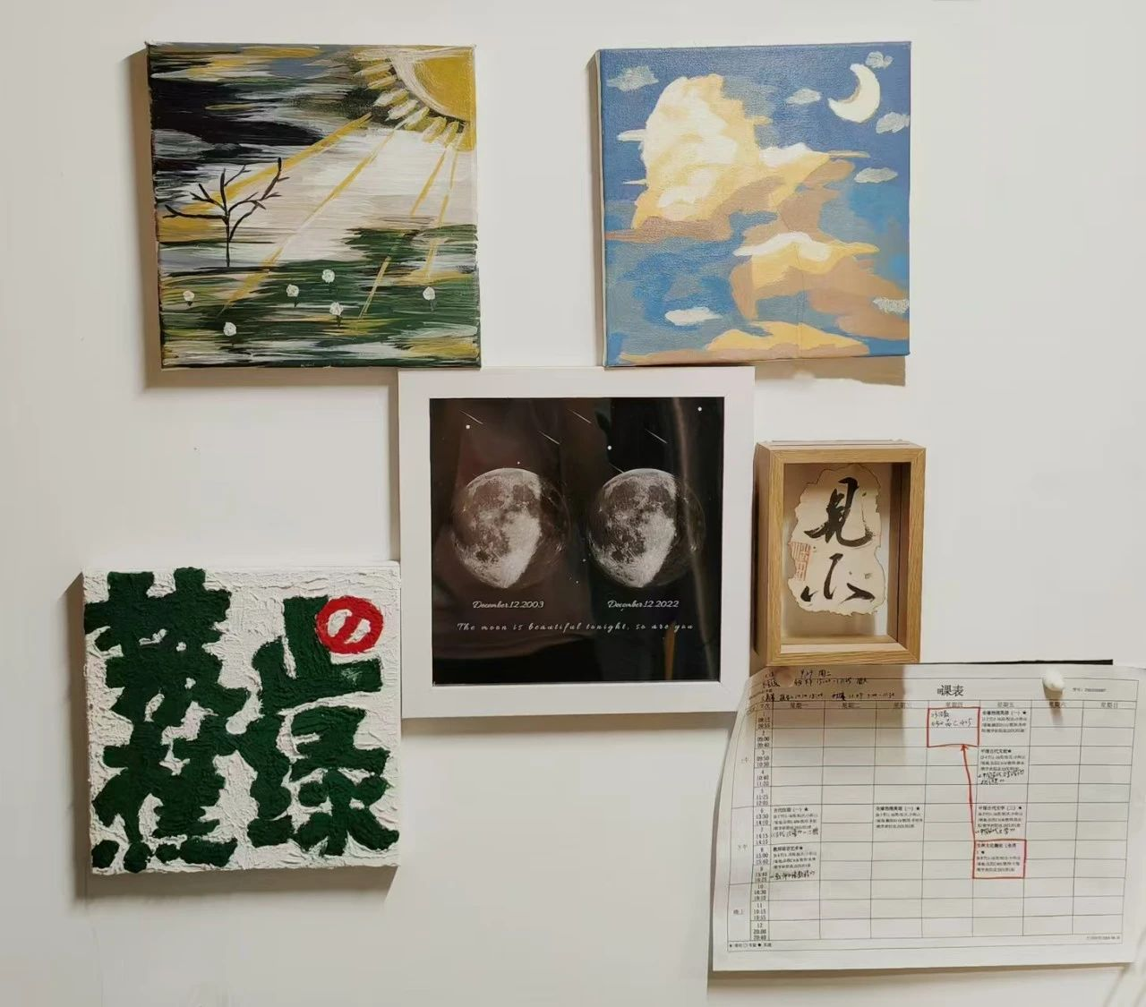 墙上的装饰展示着同学们的精神生活
