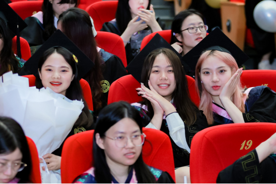 各班代表向“最喜欢的老师”、毕业班班主任以及辅导员献上鲜花并互相拥抱,表达着对彼此热烈的情意,感谢师恩。