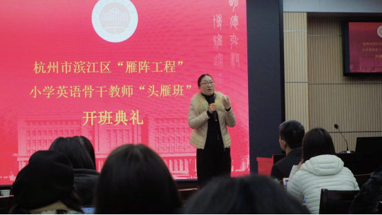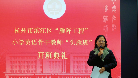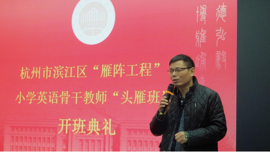 最后,杭州市滨江区教育局人事科科长姚青松作动员讲话,对“头雁班”的青年教师提出了要主动学习、珍惜机会、收获成长的要求,并预祝本次头雁班研修项目圆满成功!