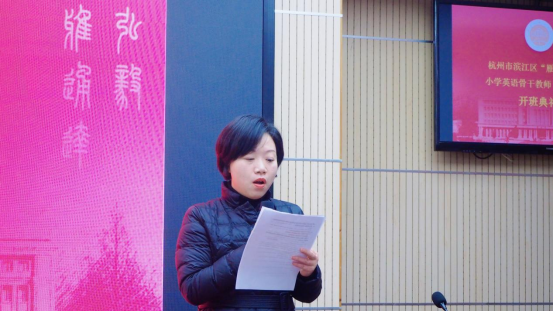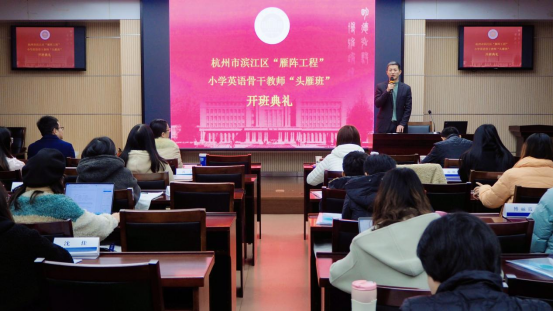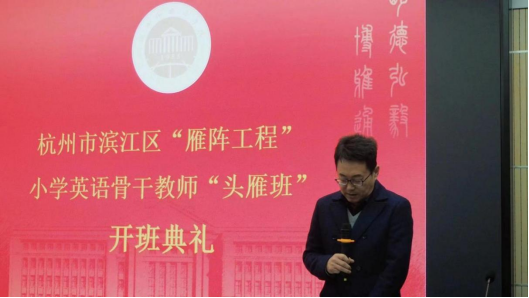12月4日,由EMC易倍官方网站EMC易倍承办的滨江区小学英语骨干教师“头雁班”在滨江区教育研究院顺利开班。杭州市滨江区教育局人事科科长姚青松、杭州市滨江区教育研究院副经理冯祖扬,浙江省中小学教师与教育行政干部培训中心常务副主任兼EMC易倍官方网站社会服务处处长吴卫东、EMC易倍官方网站EMC易倍经理叶狂等出席本次开班典礼。开班典礼由EMC易倍官方网站EMC易倍副经理郑淑贞主持。