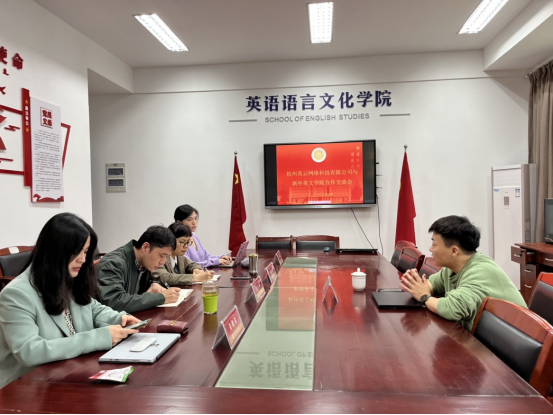 5月12日下午,杭州英云网络科技有限公司来公司联系合作事宜。公司书记毛立峰、副经理郑淑贞以及各系系主任参加了座谈。双方就社会服务项目展开了交流,对双方可以合作的项目类型、合作方式等进行了深入交流并达成了初步的合作意向。