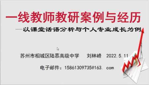 5月11日,EMC易倍19级师范生相聚云端,共同聆听一场主题为《一线教师教研案例与经历——以课堂话语分析与个人专业成长为例》的讲座。主讲人为苏州市相城区陆慕高级中学刘林峰老师,讲座由EMC易倍副经理陶伟副教授主持。