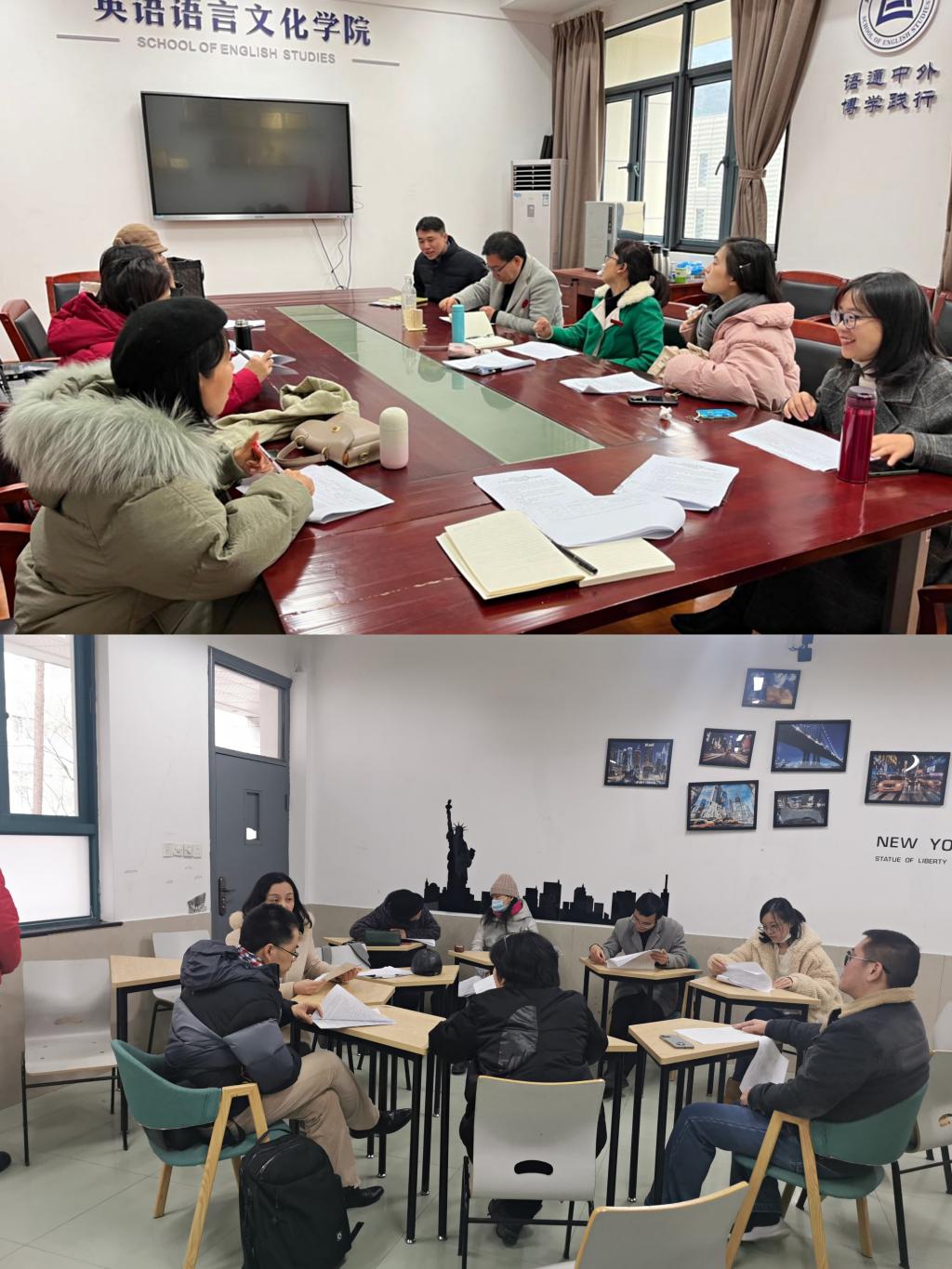 与会教职工按系别组织讨论会,就聘期任务展开了讨论,并提出了相关意见建议。