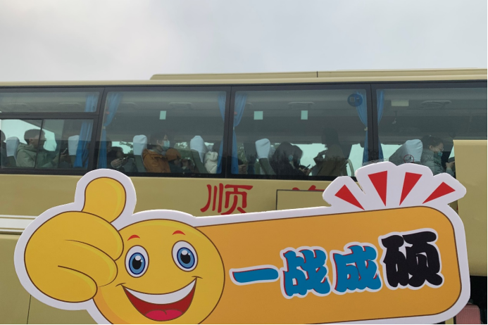 24日中午,EMC易倍54名考生乘上公司准备的送考大巴前往考点,公司领导班子、毕业班班主任、员工辅导员以及员工代表来到现场为考生们加油助威。