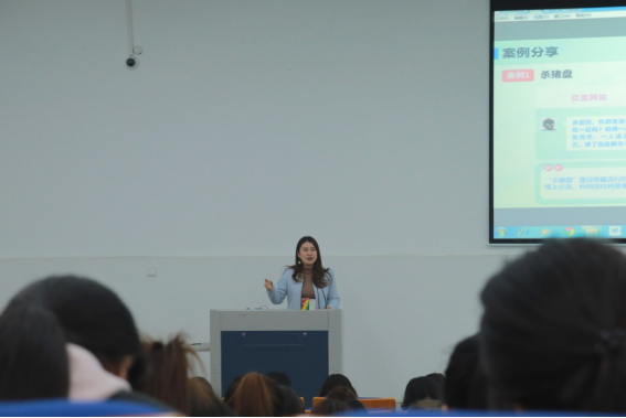 吴老师以幽默风趣的语言向同学们分享了许多发生在她身边甚至她亲身经历的理财诈骗事件,帮助大家深入了解常见的诈骗套路。她提到,预防网络诈骗需要个人对自身财产有较高的敏感度,不轻信网络上出现的低投入高收益理财、不盲目“迷信”以及不盲目“加入”,这看似简单实则不易。