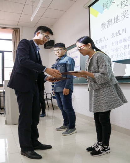 正如他所说:创业是一种情怀。余成川员工通过创业实现了自己的梦想,学习又何尝不是一种情怀。希望英文学子通过学习成就更好的自己,通过实践助力自己的梦想,通过感恩让自己成为内心真正富有的人。这是澳地奖学金设立的意义,也是英文学子应该拥有的品质。