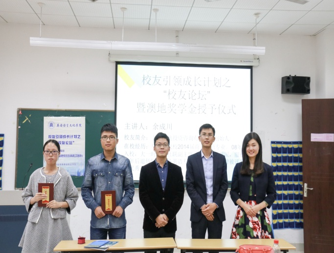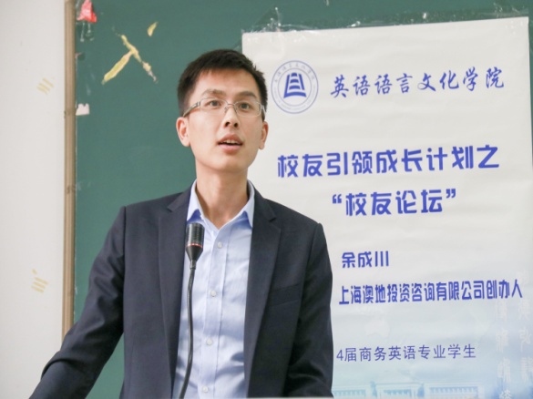 余成川员工曾是国家助学金的获得者,于返校日回校,不仅是为了表达对社会、对母校的感激之情,更多的是为了与在校的英文学子们分享他的创业心得。