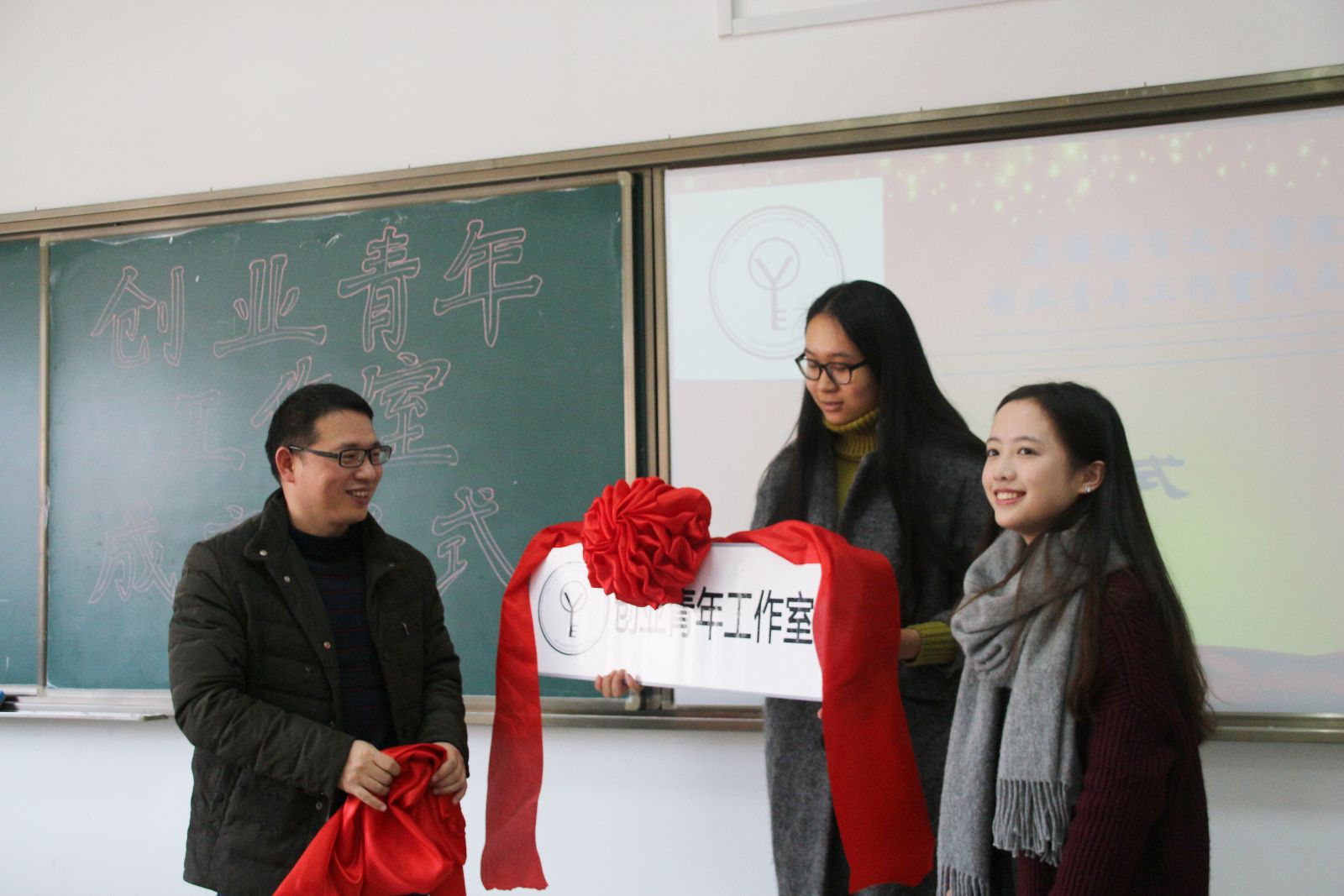 12月25日中午,创业青年工作室举办了成立仪式。校学工部部长、员工处处长盛玲、公司党总支负责人、校内外导师以及所有“创青”们出席了本次成立仪式。