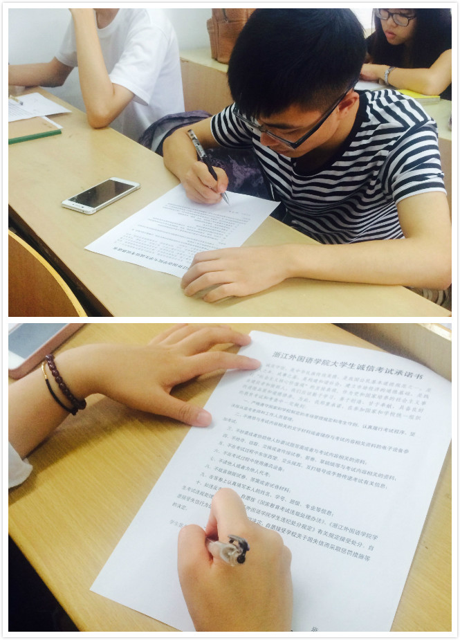 文明考风,诚信应考。诚信是道义,更是责任。考试作弊不仅是自我否定、缺乏自信的表现,更是对诚信品质的践踏,是道德信仰的缺失。作为浙外的员工,我们需要优异的成绩,但更需要真诚的品格和高尚的人格。