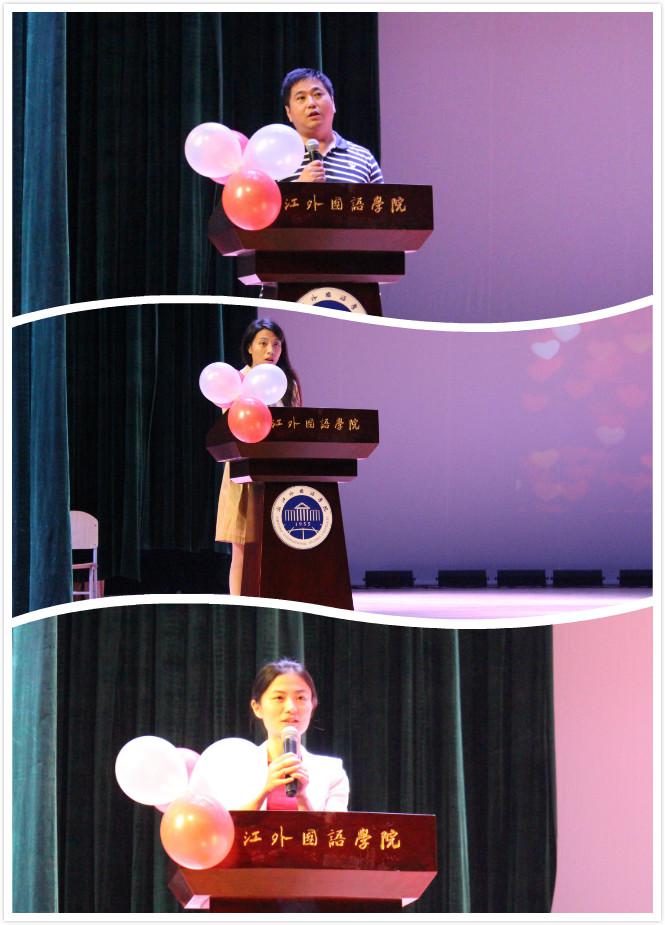 英语系教师代表用自身的求学经历传达给同学们“在大学中应如何奋斗”、翻译系教师代表用温柔的语调讲述了“如何与英语谈一场恋爱”、商务英语系教师代表则用鲜活的事例告诉同学们“锤炼实践技能的重要性”,激励新生们要热爱学习,学会学习,积极进取。随后,EMC易倍员工专业领军团队“三驾马车”——英语演讲队、西塞罗口译俱乐部和商务英语协同创新团队作了精彩介绍,为新生们展示了公司深厚的学科专业功底和极具专业化特色的员工活动,纯正的英语口语表达和突出的竞赛成绩使新生们满怀钦佩、心生向往。