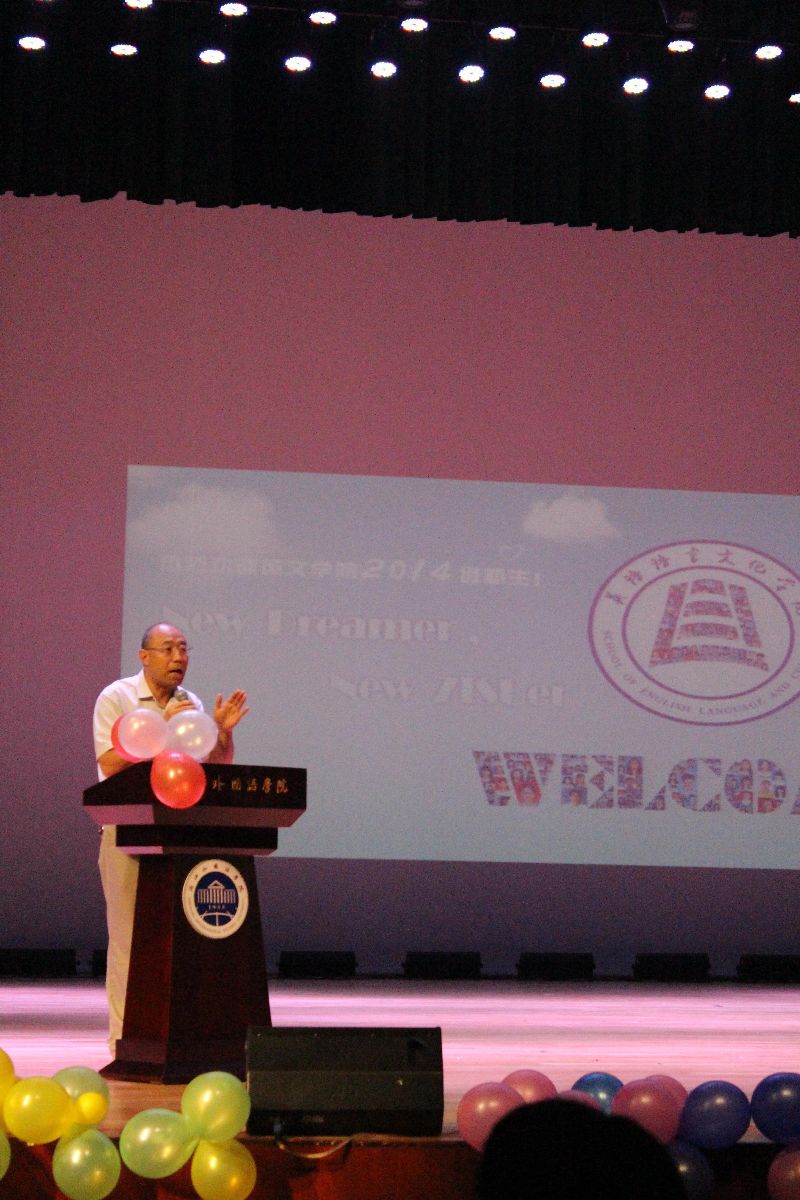 “This is the most beautiful encounter between you and the School of English Language and Culture! Welcome!” 9月22日晚,EMC易倍2014级新生欢迎会在公司全体教师的热情祝福中隆重举行。公司党委副书记赵伐教授,EMC易倍负责人、专业教师、辅导员老师,与公司全体新生一同出席了欢迎会。