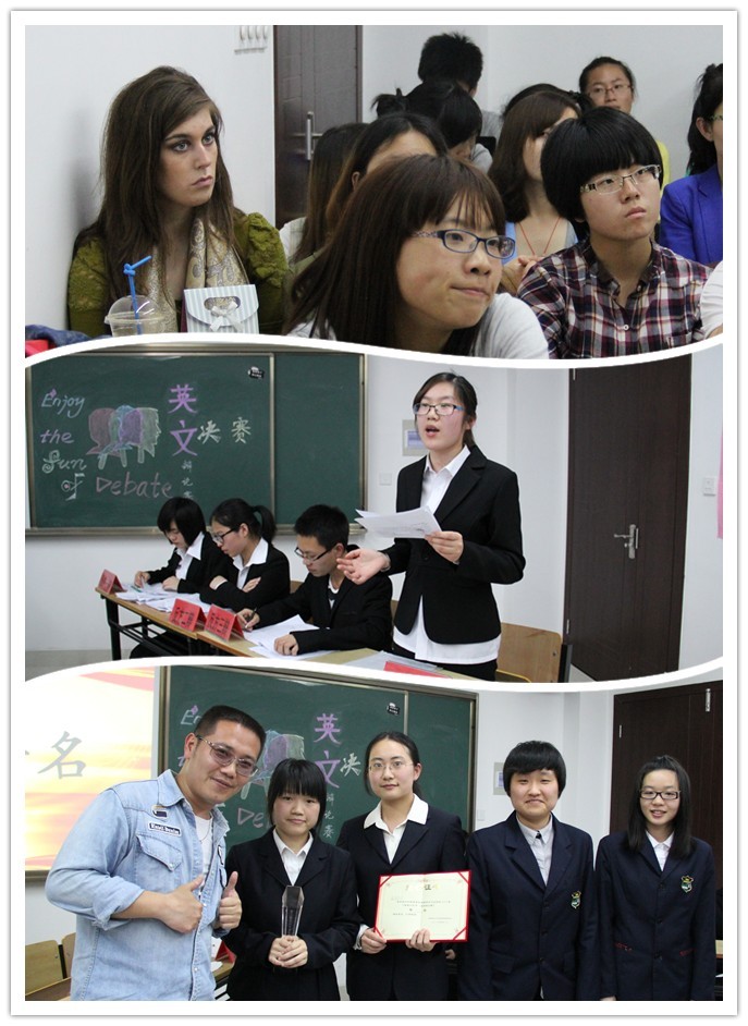 5月8日晚,第二届英语文化节系列活动之英语辩论赛决赛在小和山校区举行。17支队伍经过初赛、复赛共15场比赛的激烈角逐,最终,4支参赛队伍脱颖而出,走进了决赛的现场。英语专业教师楼翎、刘朝彦和郭安琪担任决赛评委,来自全校的英语爱好者和美国职工观看了比赛。