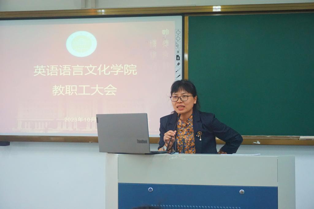 教学副经理陶伟着重强调了开学后教学工作重要事项,主要围绕日常教学纪律、课堂管理规范、教学创新意识提升、基层教研活动等方面进行部署。他针对英语(师范)专业认证整改,翻译专业和商务英语专业新文科认证学期重点工作,以及毕业论文、摸底考试、毕业实习等近期工作事项做出具体安排。