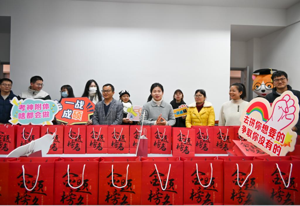在考研大礼包发放现场,公司党总支书记田俊杰用三个词表达了对考研学子们的祝愿与期盼:自信,希望同学们能有舍我其谁的“考研”精神;放松,以平常心看待焦虑,悦纳自己的各种状态;祝福,期待大家拥有“轻舟已过万重山”的坦然,所有考生如愿上岸!