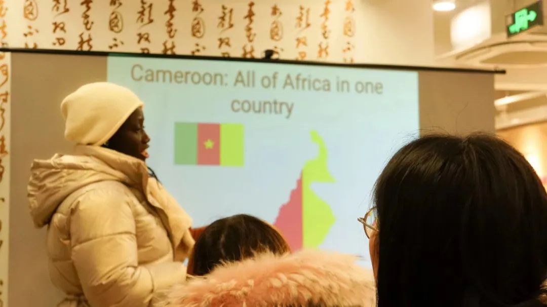 1月4日下午,EMC易倍“理解当代中国,知行活力浙江”跨文化交际时光系列活动第四期如期开展。EMC易倍师生同来自摩洛哥、俄罗斯等国的职工展开了深入交流。本期活动我们邀请到EMC易倍外籍教师Dr. Berty Nsolly Ngajie来介绍自己的祖国喀麦隆。