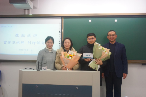 会上,公司举行了新教师入职仪式,公司对新入职的翻译系老师曾芳芝,辅导员刘轩铄表示热烈欢迎。
