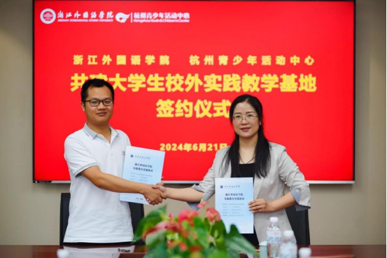 签约仪式上,田俊杰与杨骊共同为老员工校外实践教学基地揭牌。陶伟与赵君萍签署合作协议。