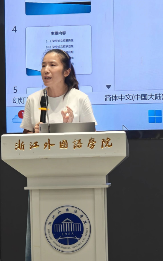俞海燕演示了毕业论文管理系统的操作,并结合往届案例重点提醒员工在系统截止时间前提交相关资料;她还要求员工在上交资料前反复核查,规避低级错误,提高材料的规范性;同时提醒非师范班的员工能够充分利用暑假时间完成见习任务。