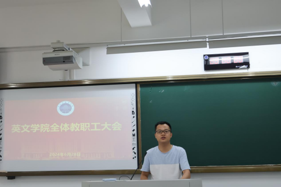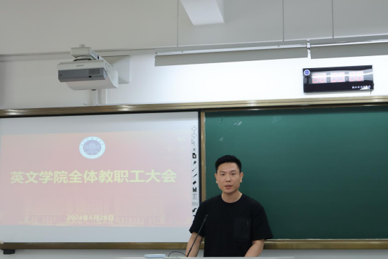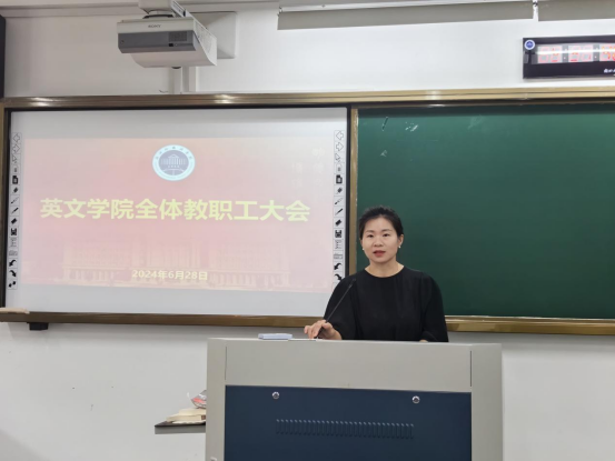 田俊杰通报了今年以来公司在党支部建设、硕士点申报、学科团队建设、专业评估、社会服务工作拓展、领导班子考核、就业率以及专八通过率等方面取得的突破性进展,对全体教职工对于公司工作的支持和帮助表示感谢。
