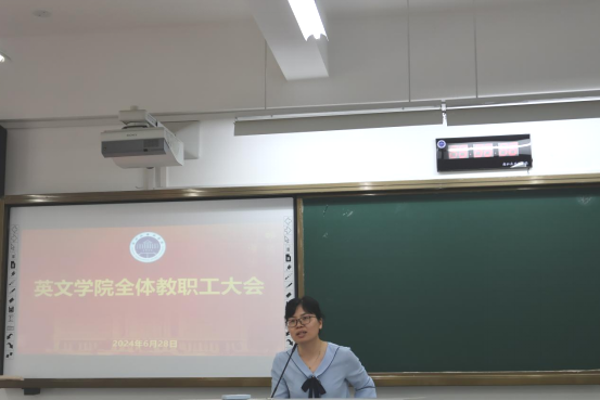 科研副经理郑淑贞围绕团队建设、项目申报、翻译硕士点申报等内容对上半年科研工作进行梳理,并对暑期的科研工作和社会服务工作的具体安排进行了部署。