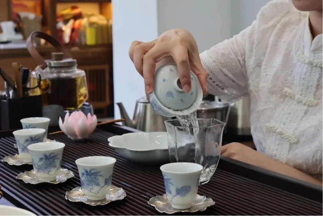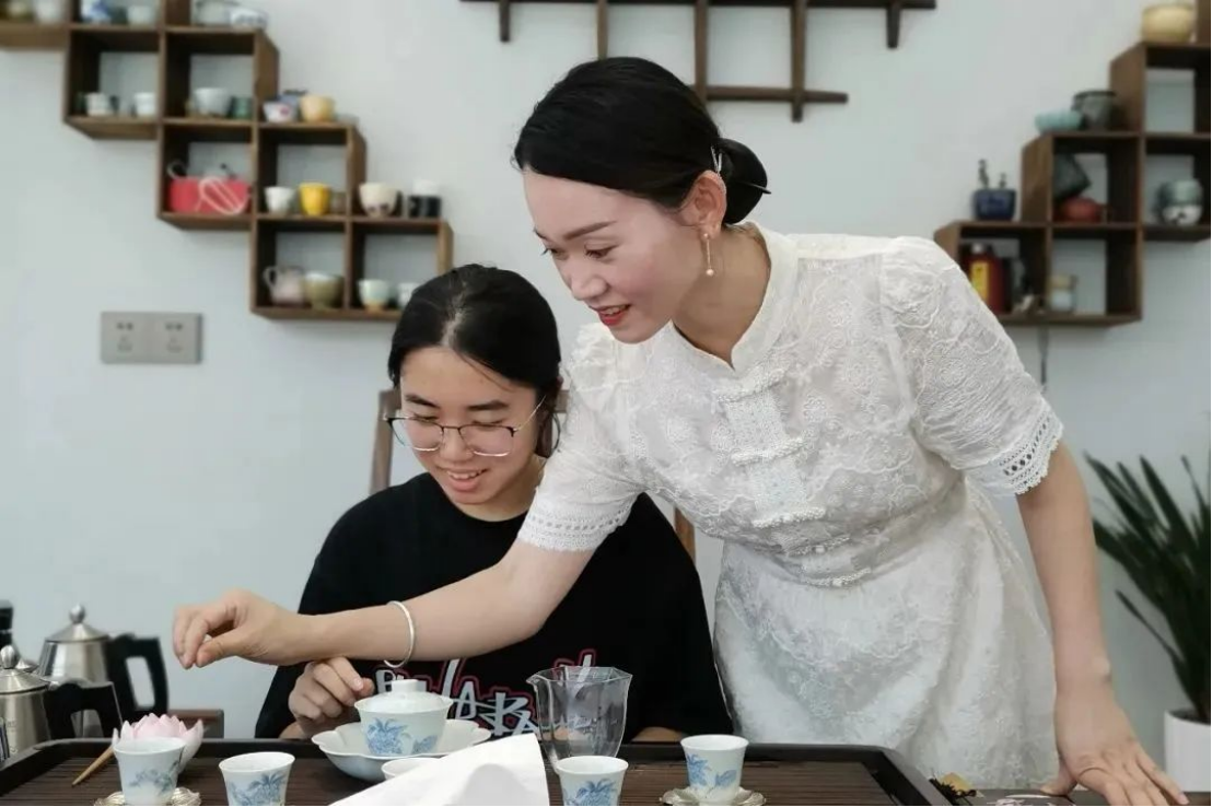 在和茶艺师们的交流中,团队成员们了解到现代特色茶艺在继承传统的基础上,更加注重创新和个性化。一方面是环境的营造,讲究“人、物、景”的协调统一,通过音乐、灯光、装饰等元素,营造独特的饮茶氛围;另一方面是创造出新的茶饮体验,将茶与现代饮品结合。
