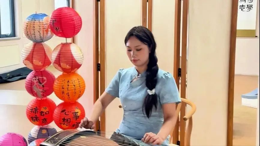 伴随着香气四溢的桂花茶和桂花糕,一首由21级音乐学(师范)潘子妍同学演奏的古筝曲《鹧鸪天·桂花》将来自各国的外交官们深深吸引。琴声如流水般倾泻而下,时而高亢激昂,时而低沉婉转,引得大家如痴如醉。