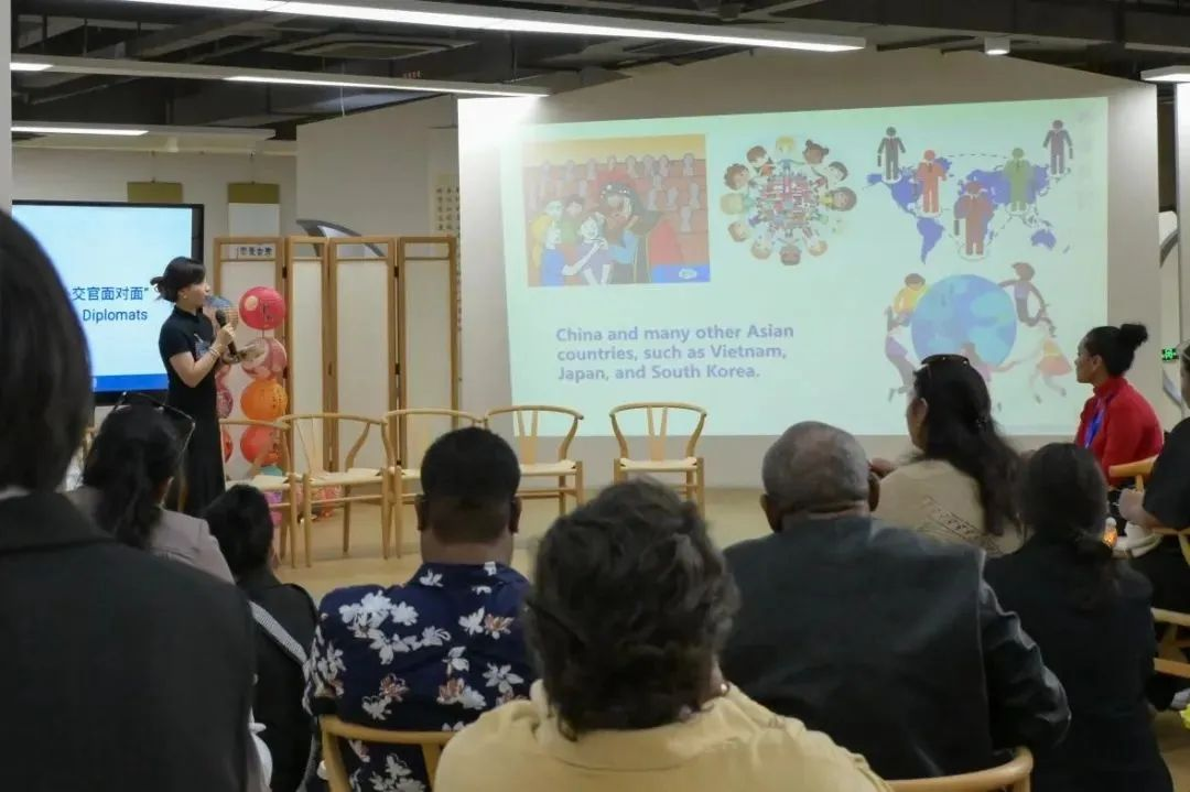 作为“外交资源进课堂”的又一实践,在“闻桂送贵友”环节,大家分享了本国的传统节日及其背后的文化故事。这一过程在让大家感受各国文化魅力的同时,增进国与国人民之间的情感交融。外交官员们还分享了自己从事外交事业的过程和经历,鼓励在座的员工朋友们充分利用好大学学习的机会,提升自身的专业能力。同时,青年作为国与国交流的纽带,要具备国际文化交流与传播的意识,在展现本国良好形象的同时,积极参与到各项事业的建设中去,为构建开放、互建、和谐、包容的外交关系而努力。所罗门群岛外交官员Wilfred非常珍惜这次和中国青年有直接交流的机会,他希望未来能继续和中国以及其他国家保持紧密的联系,从而进一步促进所罗门群岛以及太平