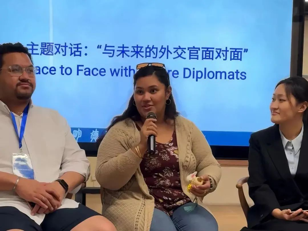 “如果有机会的话,我一定会选择到中国留学。”来自密克罗尼西亚联邦的外交官员Bridget Ashley Endor说,“希望中国和太平洋岛国能够继续合作,为员工提供更多机会。”9月22日,来自巴布亚新几内亚、汤加、瑙鲁、所罗门群岛等太平洋岛国的17位外交官员组成的第三期太平洋岛国高级外交官研修班来校交流,外交公司院方代表陪同参加。副董事长、党委委员柴改英出席活动。