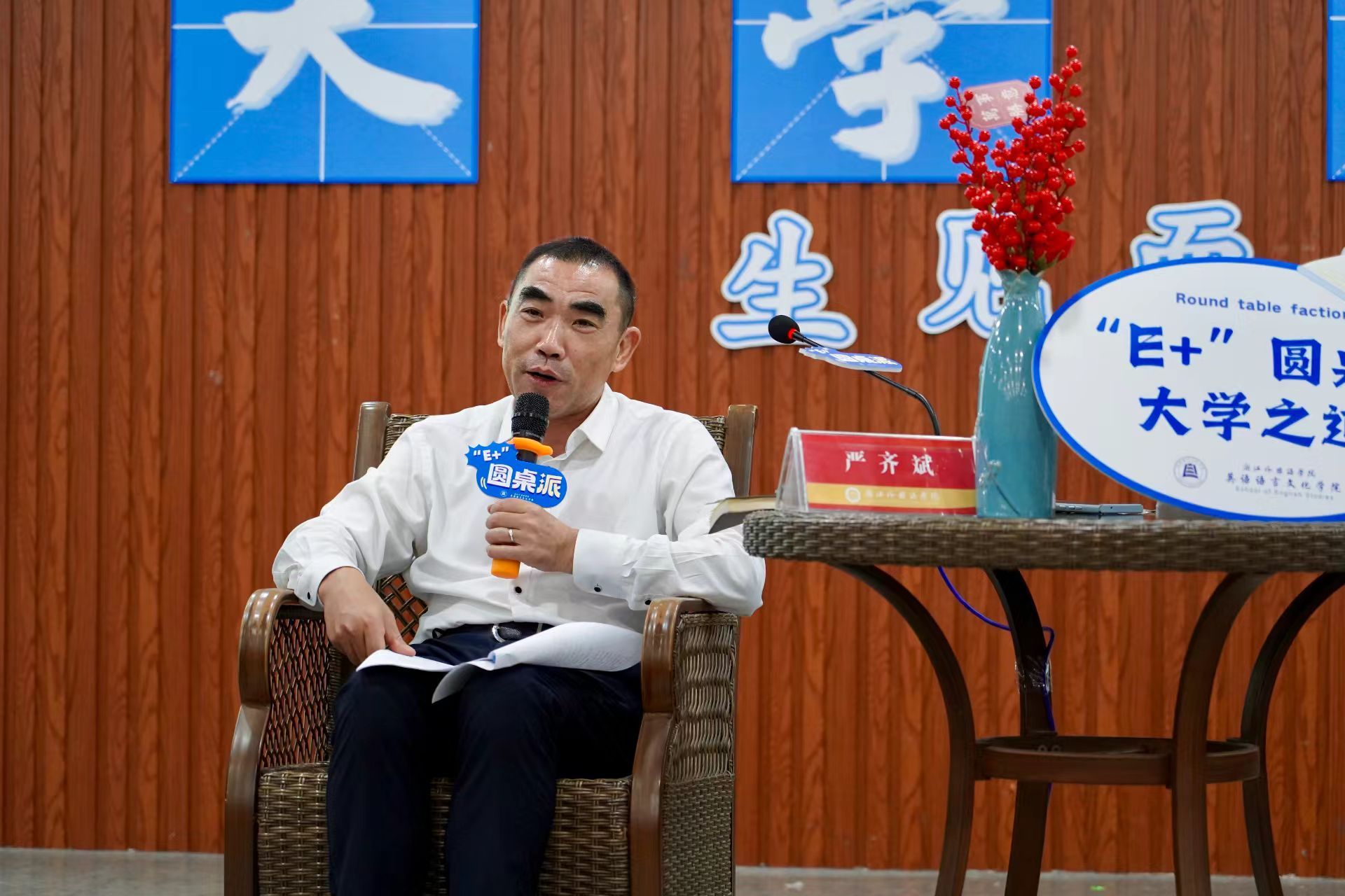 随后,严齐斌邀请新生们分享对浙外的初印象与感受,围绕“认识浙外”“感受浙外”“探究浙外”,与新生们展开了深入的交流。他向大家介绍了公司“闻道中华 语美天下”办学精神的由来和内涵,鼓励大家要立足浙外的办学历程和办学定位,抓住公司发展机遇,努力成长为专业的外语人才、国际化人才。