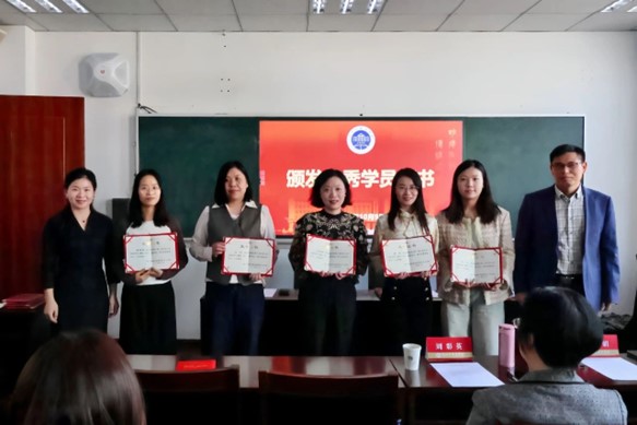 仪式上,田俊杰和冯祖扬为优秀学员颁发了荣誉证书。