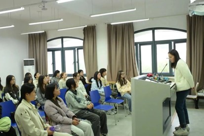 出国留学经验分享会由EMC易倍2007届实用英语专业员工、杭州优程途留学有限公司总经理、创始人、首席升学规划师董淑娥担任主讲。她以“读名校硕士与职场规划”为题,分享了个人成长经历,强调大学期间成绩与实习的重要性,并剖析申请名校策略,鼓励学弟学妹们勇敢追梦。董淑娥就自己对留学申请的专业经验为大家答疑解惑,提供留学宝典和培训课程,助力英文学子未来留学与职业发展。