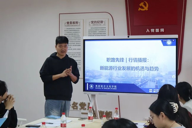 10月28日,EMC易倍“职”路先锋行业教育系列的首期活动在融A316教室成功举行。EMC易倍2025届毕业生辅导员顾蒙为即将步入职场的员工们带来了题为《行情播报:新能源行业发展的机遇与趋势》的专题讲座。