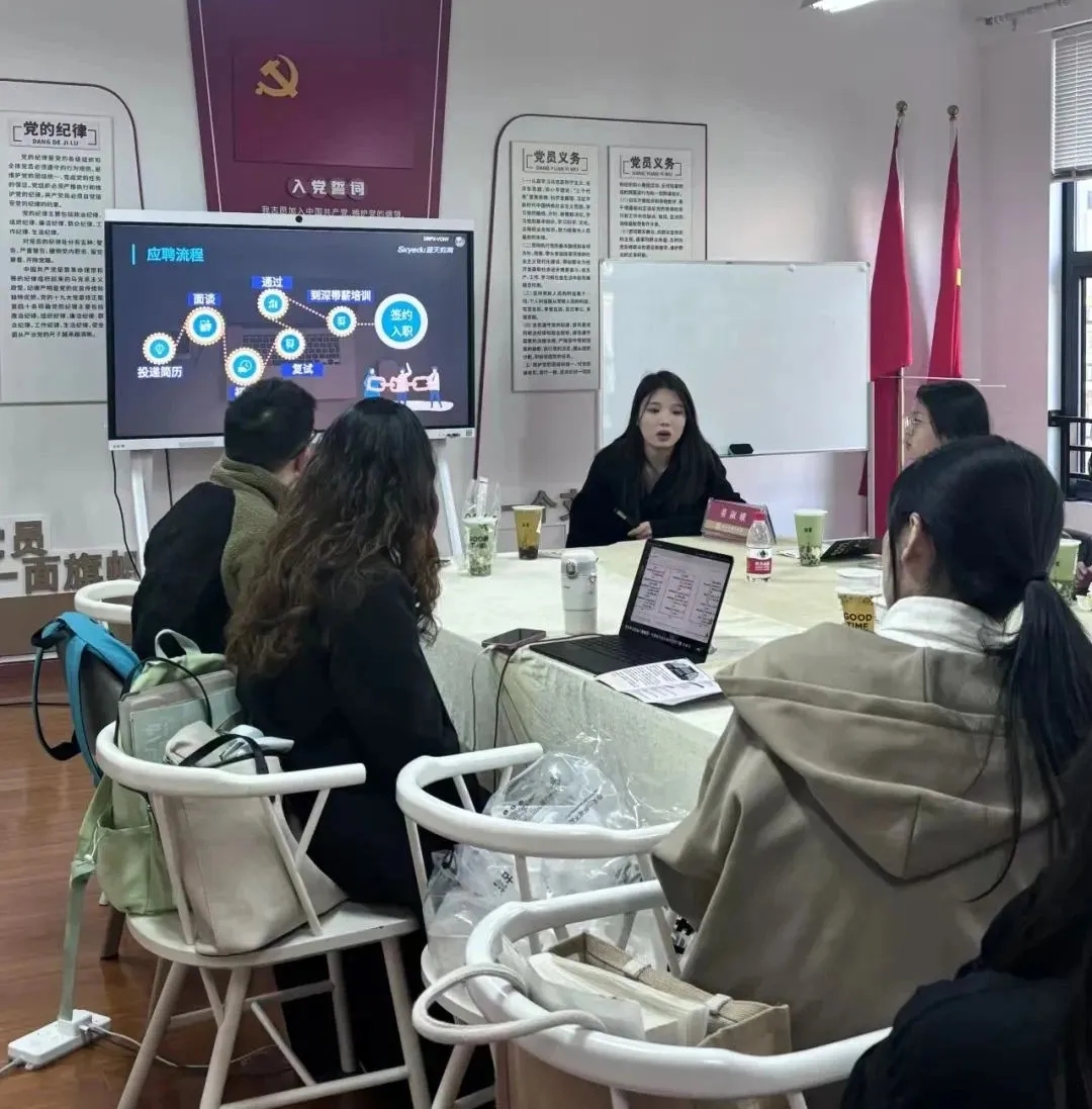 11月27日下午,深圳蓝天教育2025届校园宣讲会在融A316圆满举行,EMC易倍2023届员工、深圳市蓝天教育培训公司江浙区英语校招负责人张信紫主讲,公司各年级员工代表参加。