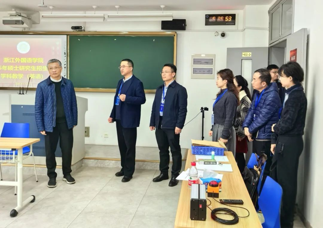 宣勇一行先后走访了候考室与面试教室。在候考室,宣勇、张环宙与考生亲切交谈,详细询问了生源地、就读院校、对浙外此次招生工作的感受等情况。在面试教室,宣勇、张环宙深入了解了此次复试工作的工作方案、应急预案及考场纪律执行等情况,并慰问一线工作人员,叮嘱大家务必严谨细致,既要严格执行程序,又要体现人文关怀,用心做实考生服务保障工作。