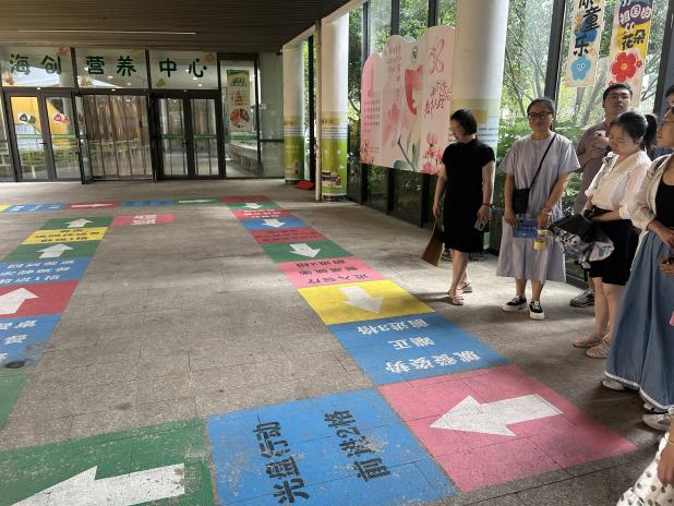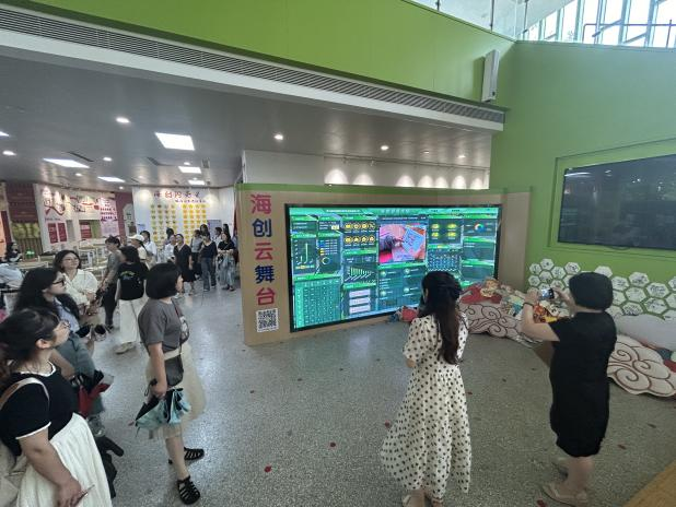 海创小学英语组教师带领大家参观了校园内丰富的场馆资源,包括“海创树屋”“海创良田”“海创码头”等特色场馆。这些场馆不仅是员工实践学习的场所,更融入了AI技术:生态园中,员工利用AI工具制作植物双语名片,解决植物辨识问题;大厅的“AI运动系统”则通过人脸识别为员工提供跳绳排名激励,激发运动兴趣。