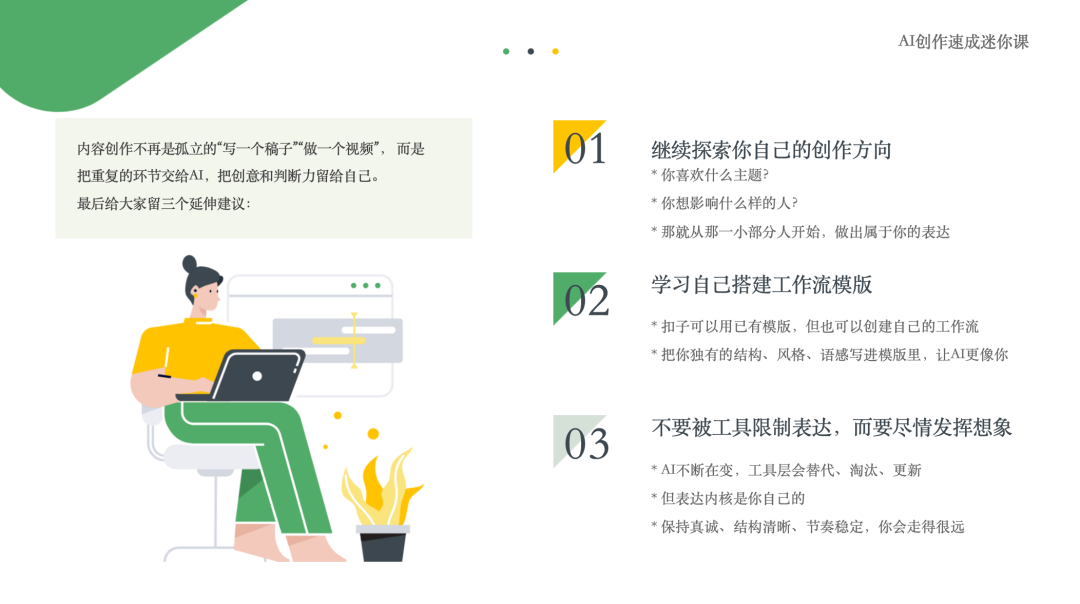 7月4日晚,拥有五年自媒体运营经验的博主“潘潘”通过线上会议带来题为“AI创作速成:从灵感到短视频的一键生成”的分享。她全面梳理AI内容生产流程,从写作构思、文案生成,到图像辅助、语音合成及视频制作,结合具体案例现场演示,使员工切实感受AI技术在内容创作中的应用前景与实践潜力。