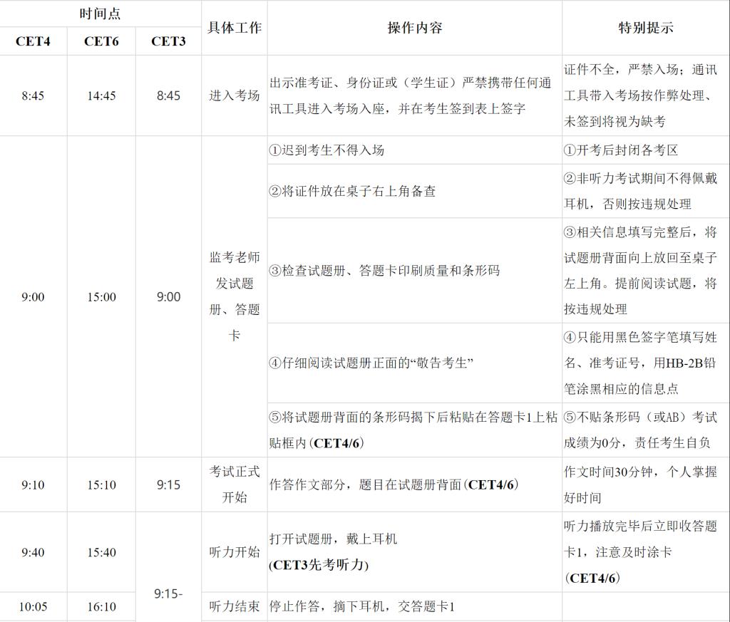 注:日语、法语因没有听力考试,8:50当众启封试卷,8:55发卷,9:00正式开考,11点考试结束。