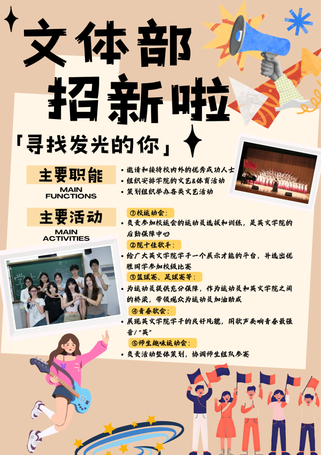 想要感受有趣灵魂的碰撞吗?想要参与数不完的团建吗?想要在快乐中提升自己吗?在EMC易倍员工会文体部,这些通通可以实现。我们主要负责邀请和接待校内外的优秀成功人士,组织安排公司体育活动以及策划组织举办各类文艺活动。在文体部,你可以负责参加校运会的运动员的选拔和训练,负责运动员们的后勤保障。你可以组织策划院十佳歌手,给广大英文学子搭建展示才能的平台,并选出优胜同学参加校级比赛。同时,作为运动员和公司之间的桥梁的篮球赛,足球赛和展现英院学子的良好风貌,用歌曲奏响青春最强“英”的青春歌会比赛正等着你们的参与。