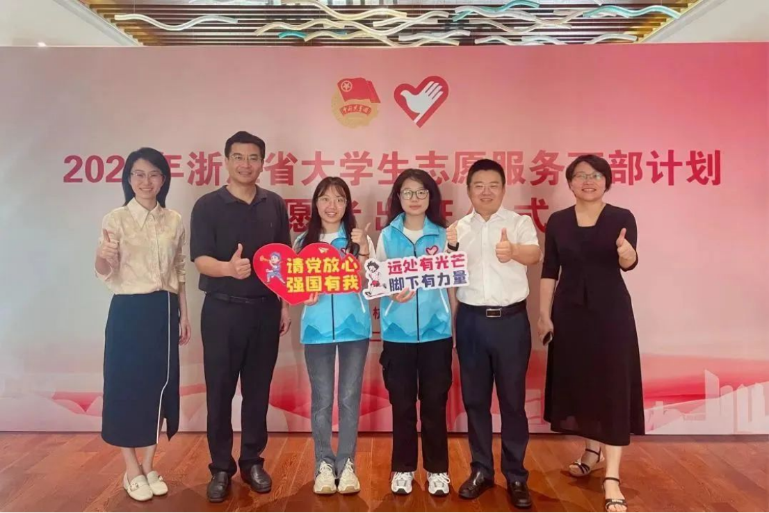 7月17日,浙江省老员工志愿服务西部计划安徽服务团志愿者出征仪式在杭州举办。今年公司共有8名同学报名西部计划。经过各项考核、政审和体检,商务英语专业王艺儒、段雨乐同学光荣入选。接下来,就让我们走近她们,听听她们奔赴基层的初衷。